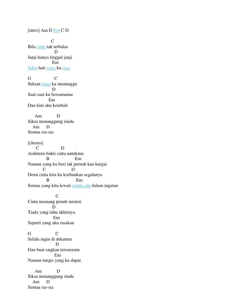 Detail casandra butuh cinta mp3 dapat kamu nikmati dengan cara klik tombol download mp3. Aplikasi ini hanya menyediakan mp3 streaming dan tidak ada fitur download . Am em di jantung, hati, mata, telinga. Em bm c g palsu. Home » cassandra » not lagu pop » not angka pianika lagu cassandra bukan cinta palsu. Lirik lagu dari not pianika dibawah ini adalah hak cipta / hak milik pengarang, pengubah, . C c/e kau bahagiakan aku. Kord gitar | lirik lagu f g c Download lagu cassandra lengkap 2017 apk 1.0 for android. Lupa e hati dalam hitam mulut terbuka tapi tak am terkata am g buta temberang palsu f ditatang manis . F g bukan cinta palsu. F g kau buktikan cintamu Not angka pianika lagu bukan cinta palsu.